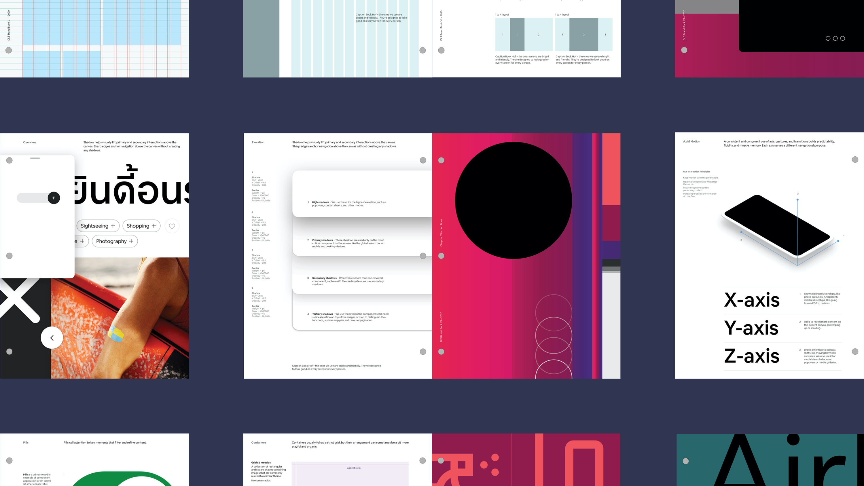 Early spread iterations and graphic definition for the Airbnb internal design book.