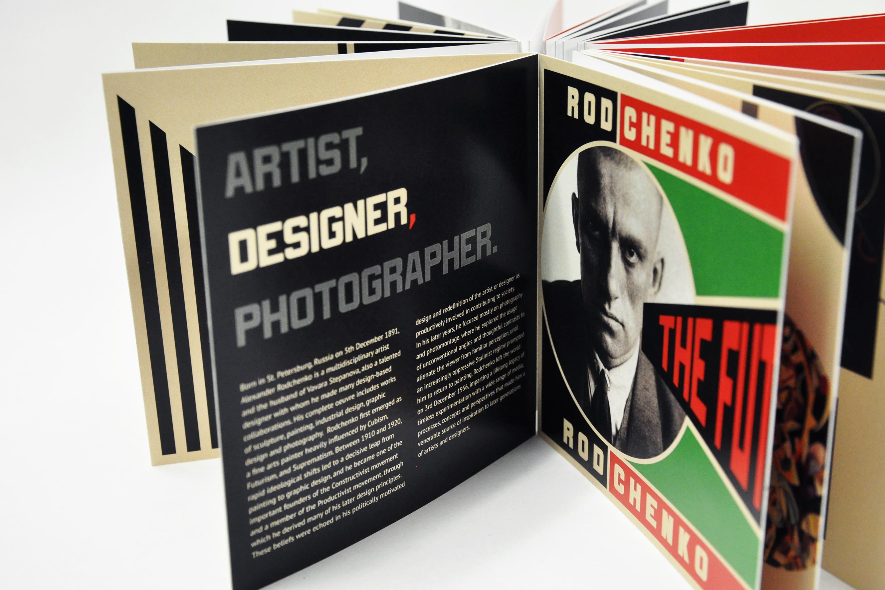 An accordion book documenting the evolution of Alexander Rodchenko’s graphic design through key stages of his life.