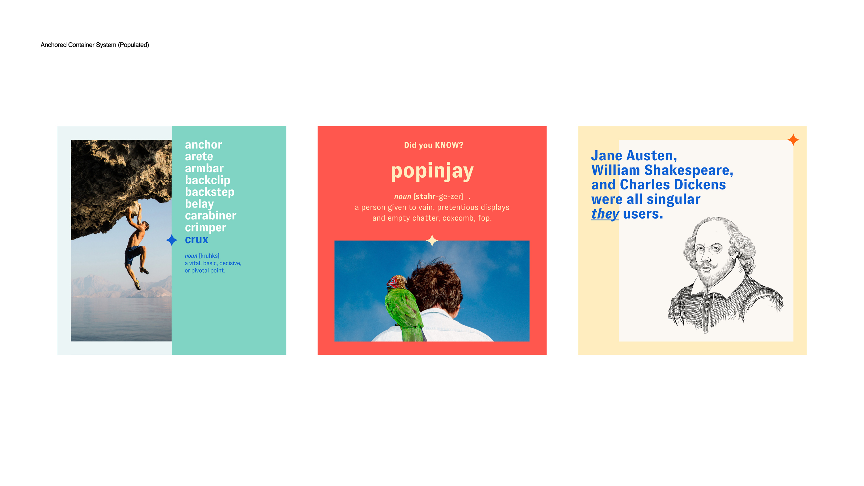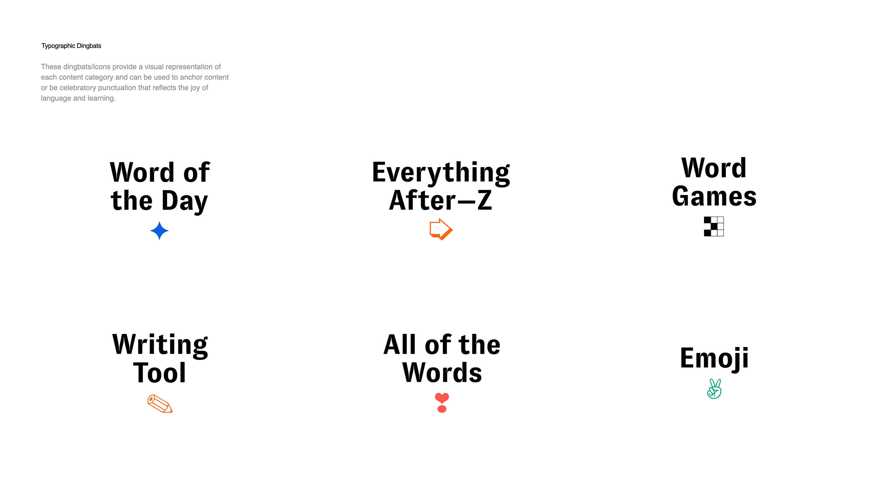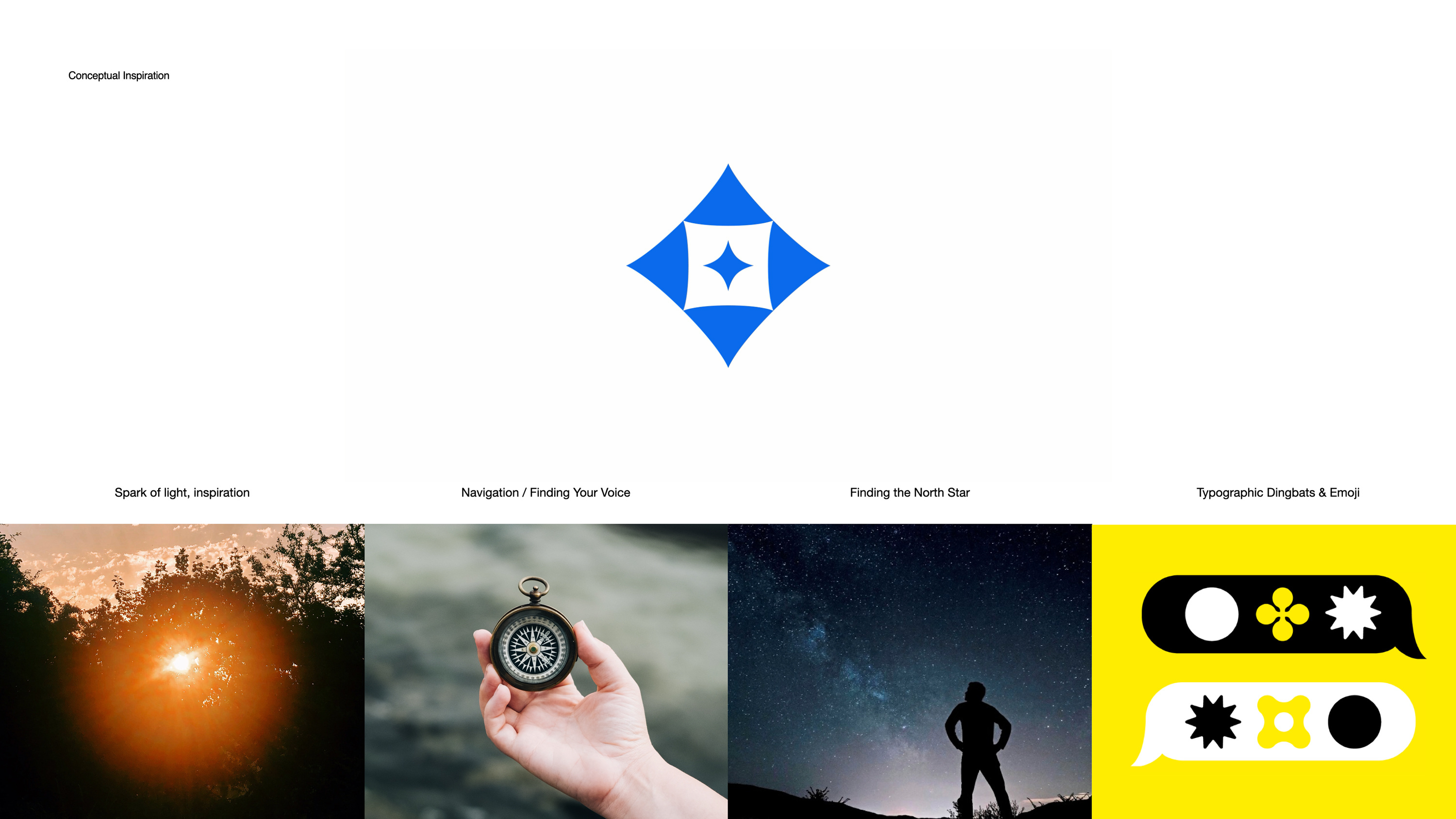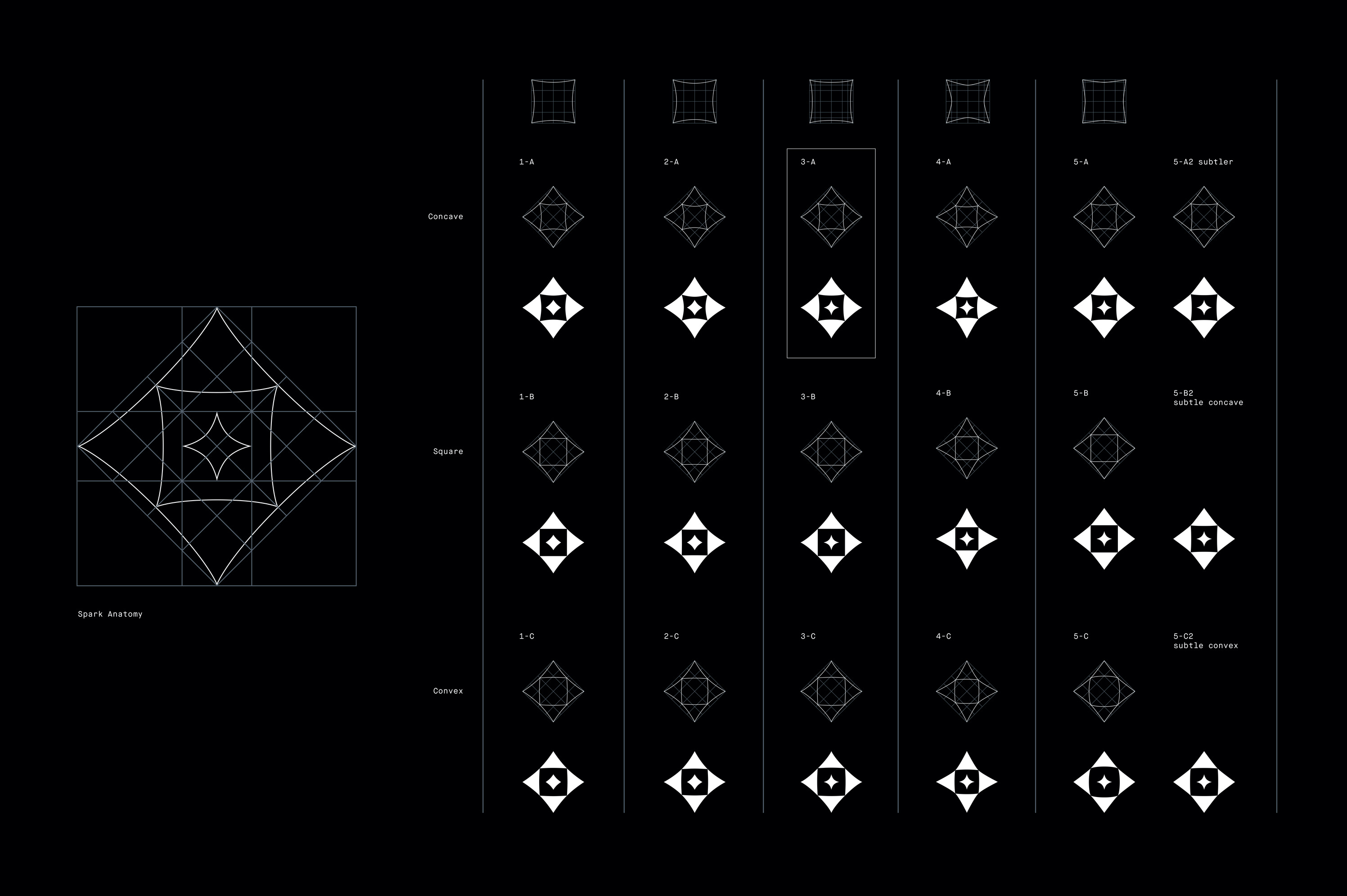As a logomark, the Spark feels curious, empowering and almost musical. It’s constructed with 3 layers that fan out to suggest a sense of outward expansion and multifaceted growth, 4 points reminiscent of a compass and the cardinal directions. In motion, the Spark animates in a way that reflects “a layered dictionary” and rotates smoothly to toggle between platforms. Its glyph lockup is also a nod to typographic traditions such as asterisks, superscripts and paragraph symbols.