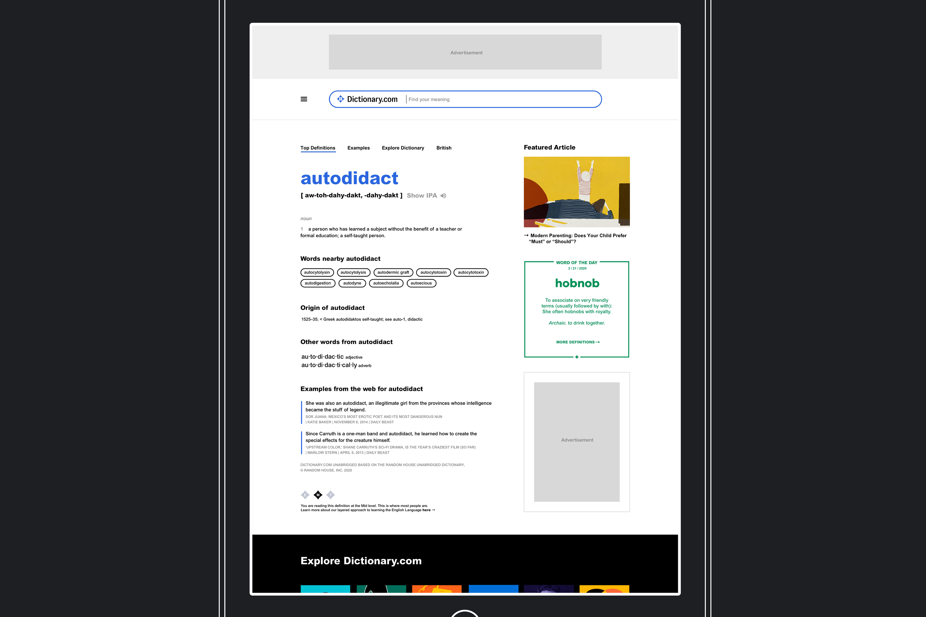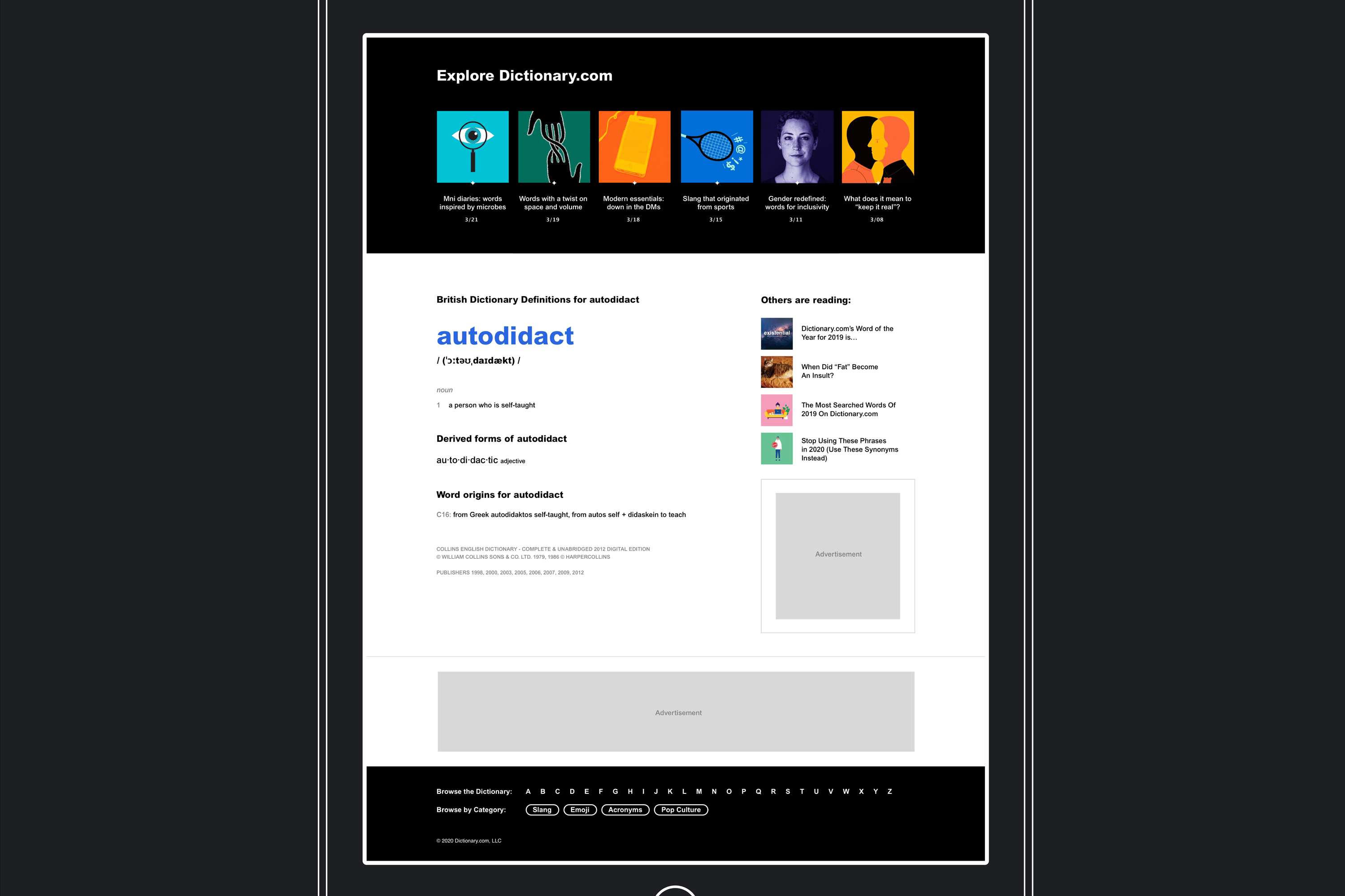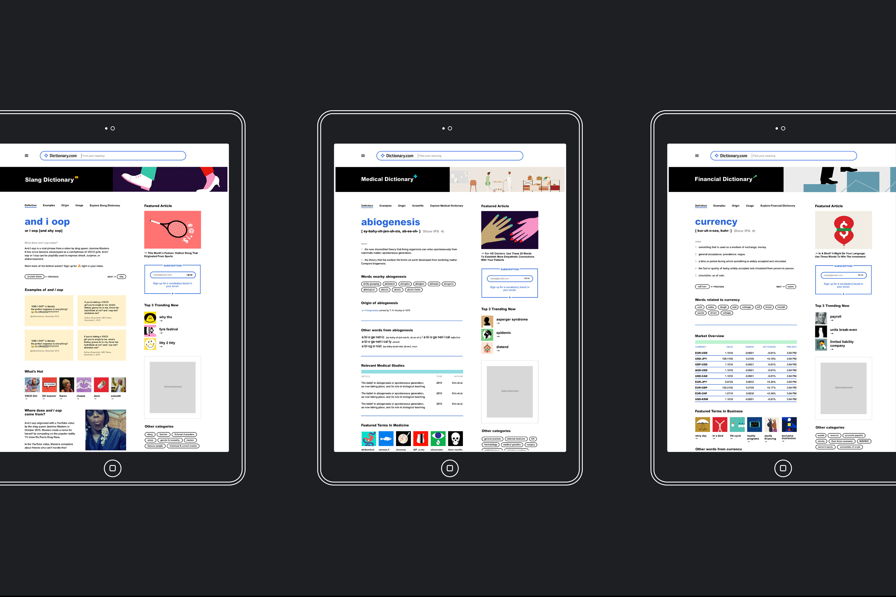 .COMDictionary.com was exploring possible routes for a rebrand in the image of an educational platform rather than a traditional dictionary. They saw themselves as “a layered dictionary” for learners at all stages of life and mastery, and were looking for an identity that speaks to change, wonder, versatility, technology and AI. Though the partnership with Manual was later dissolved due to circumstantial reasons, I truly enjoyed developing this brand concept.