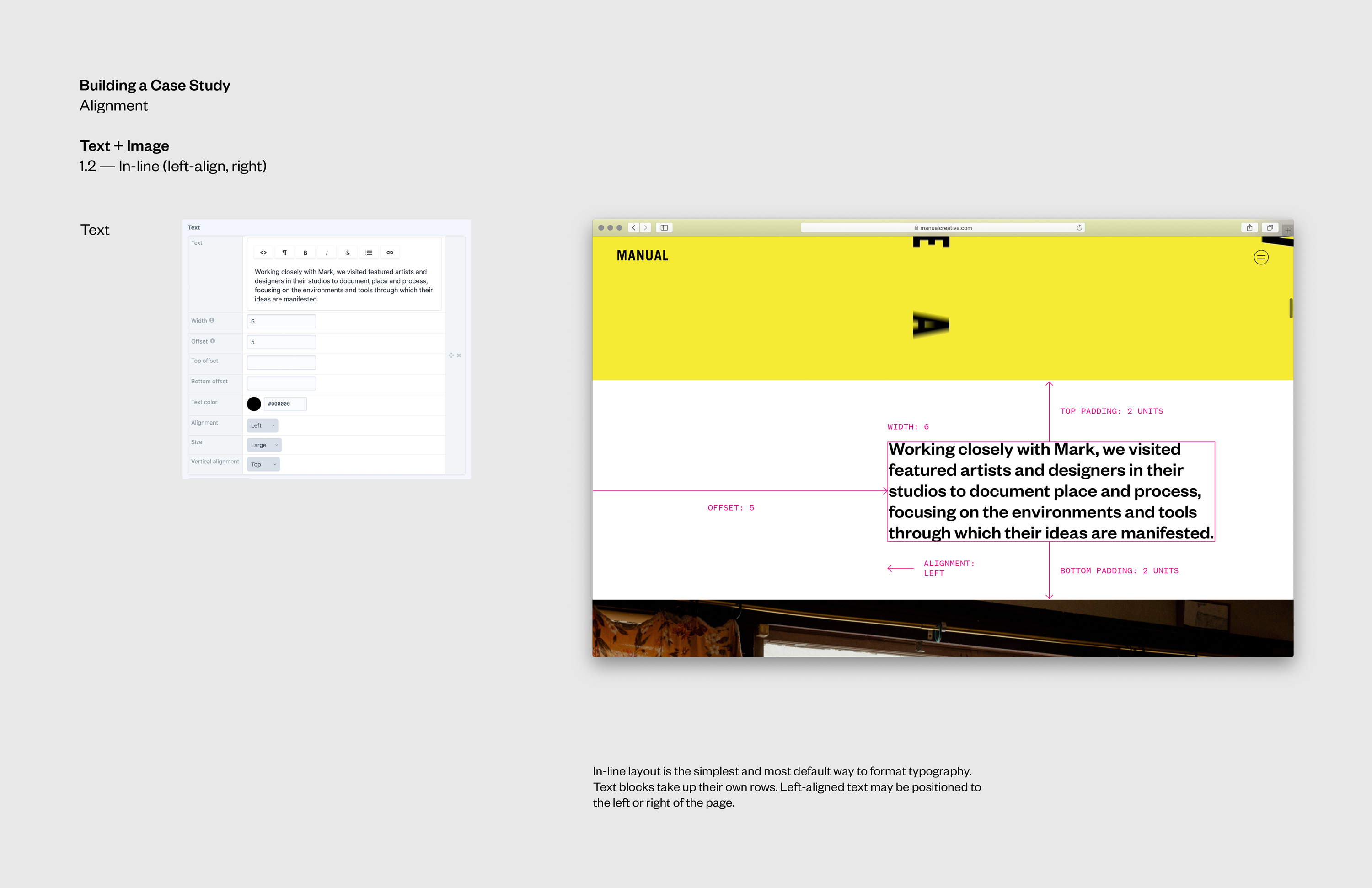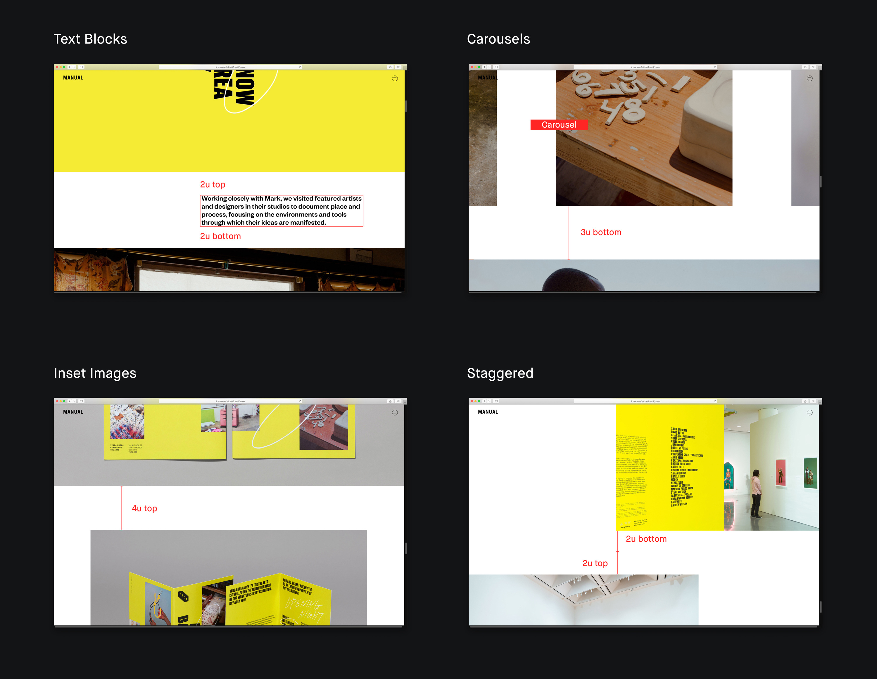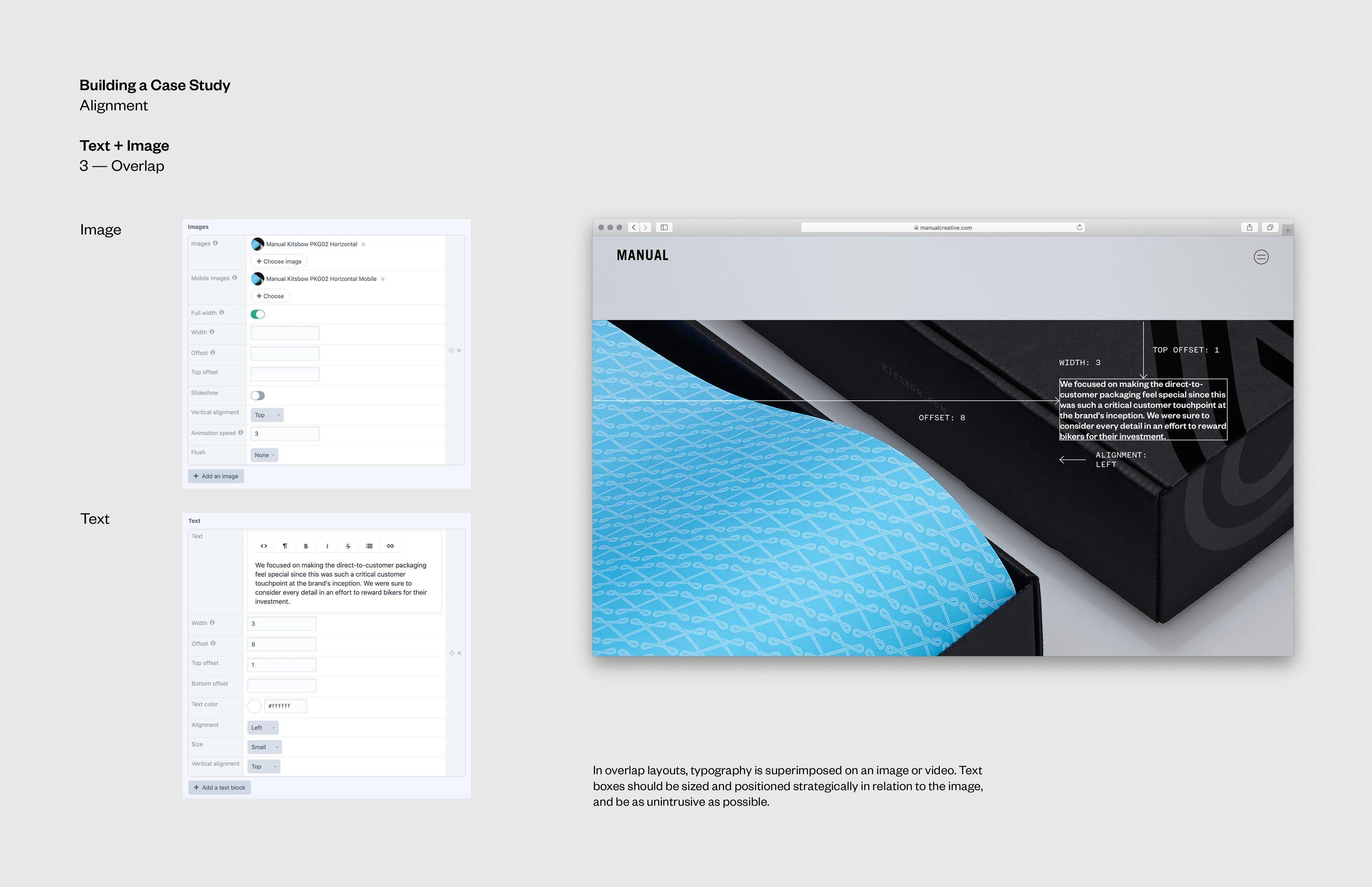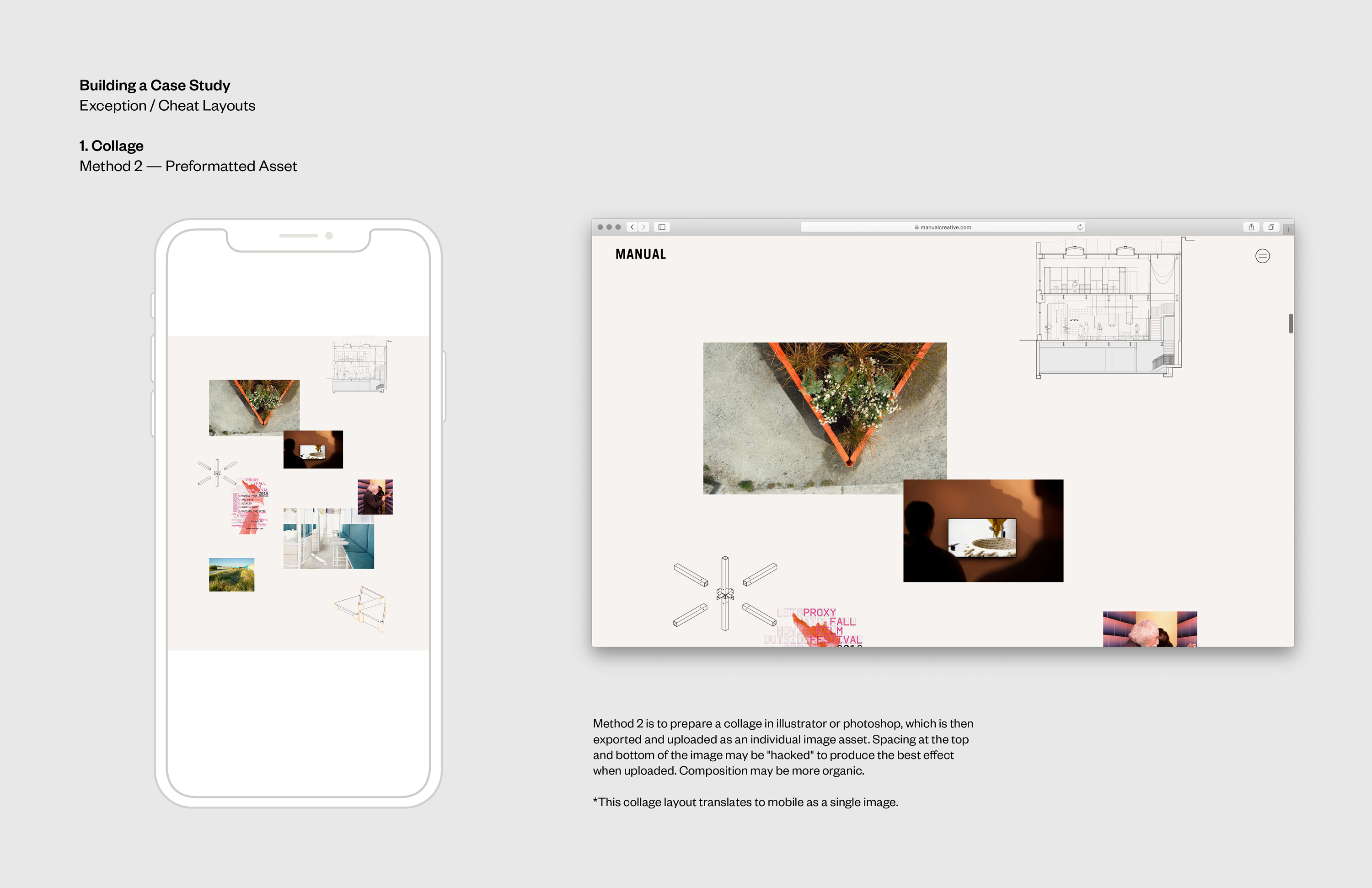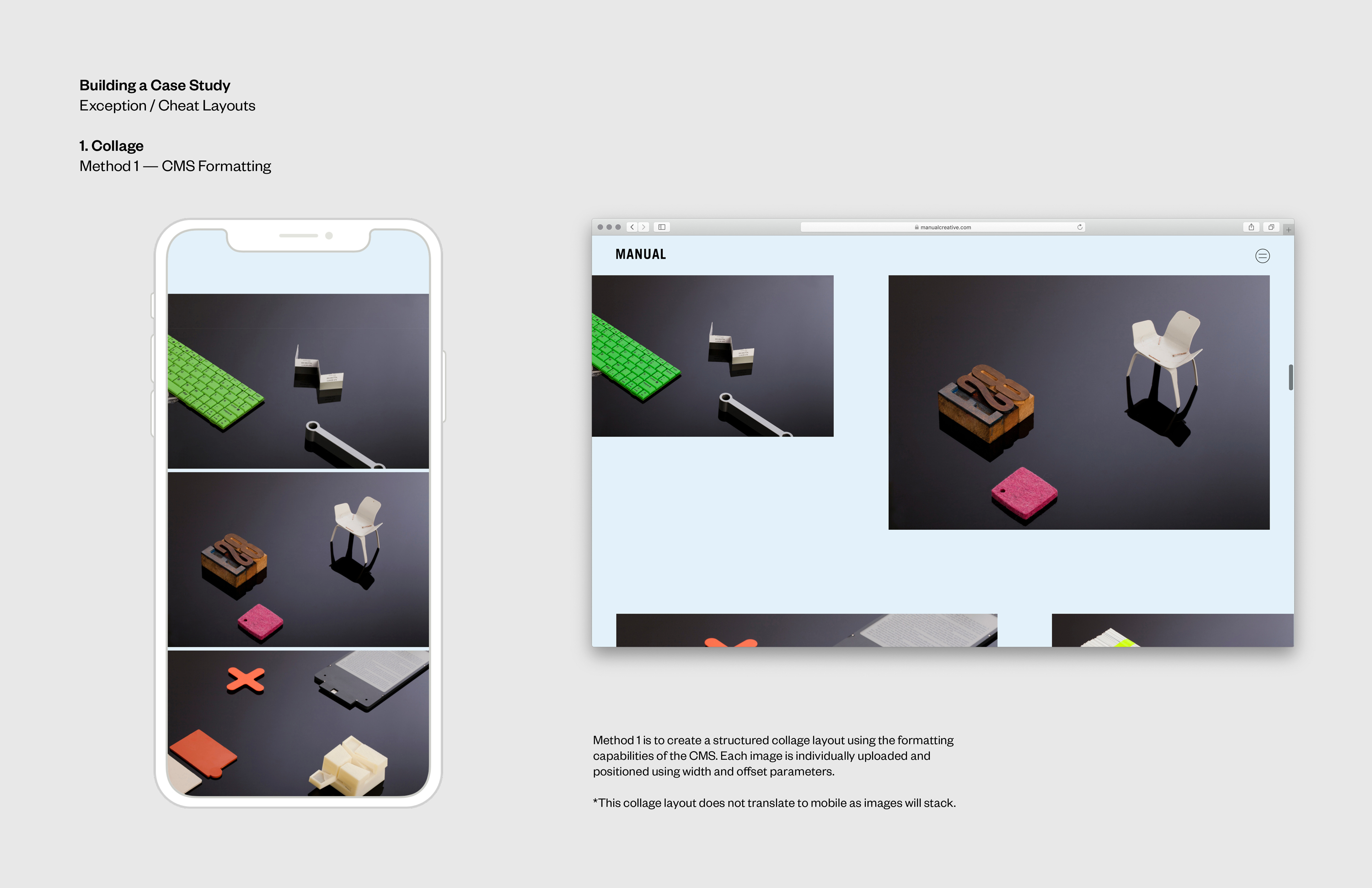 I created a 69-page usage guide to ensure the Manual team can continue building case studies and use the Craft system in my absence. This guide thoroughly documents fundamental aspects of the CMS, asset preparation guidelines, content functions, layout parameters, as well as page styling methods.
