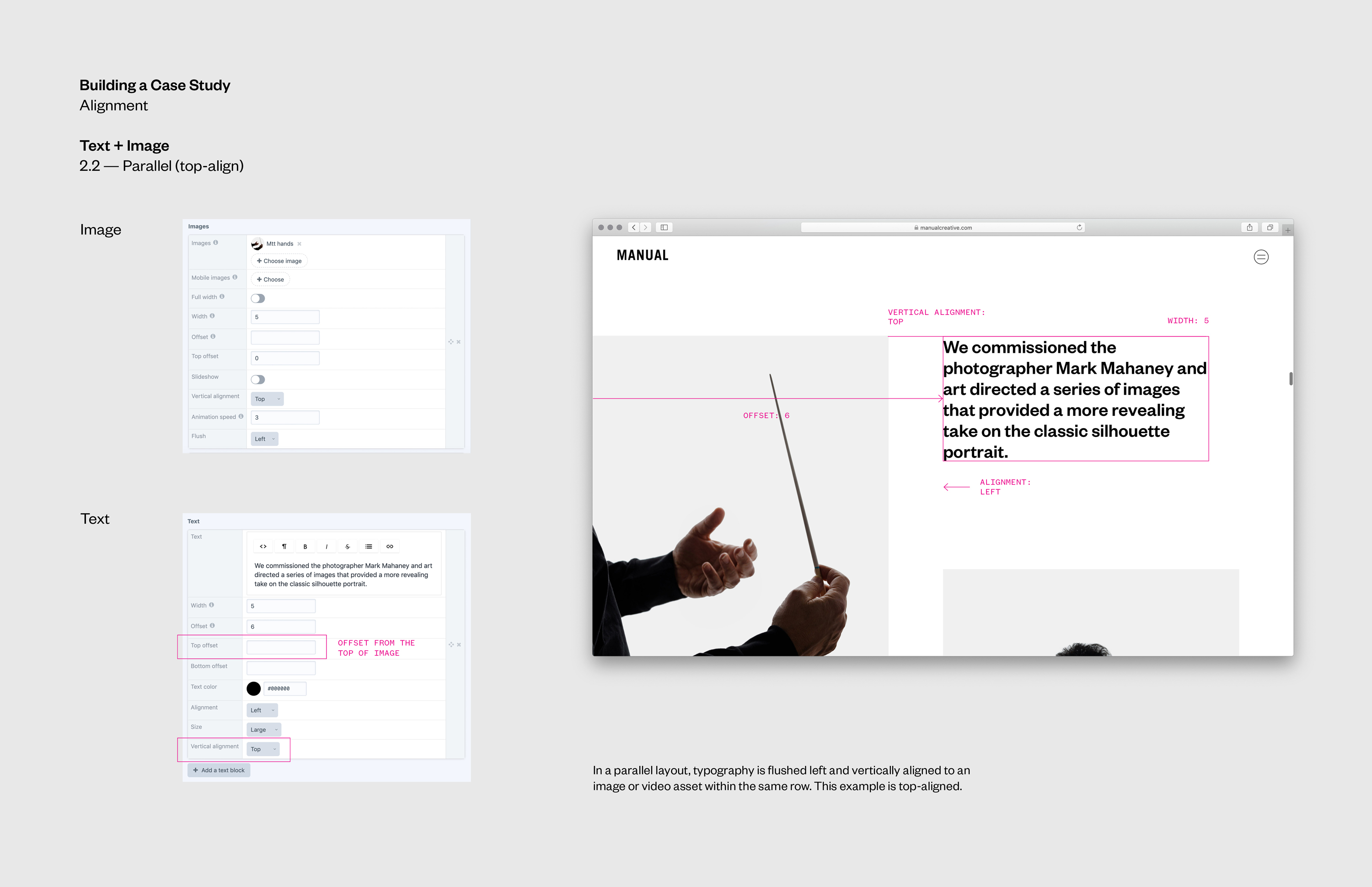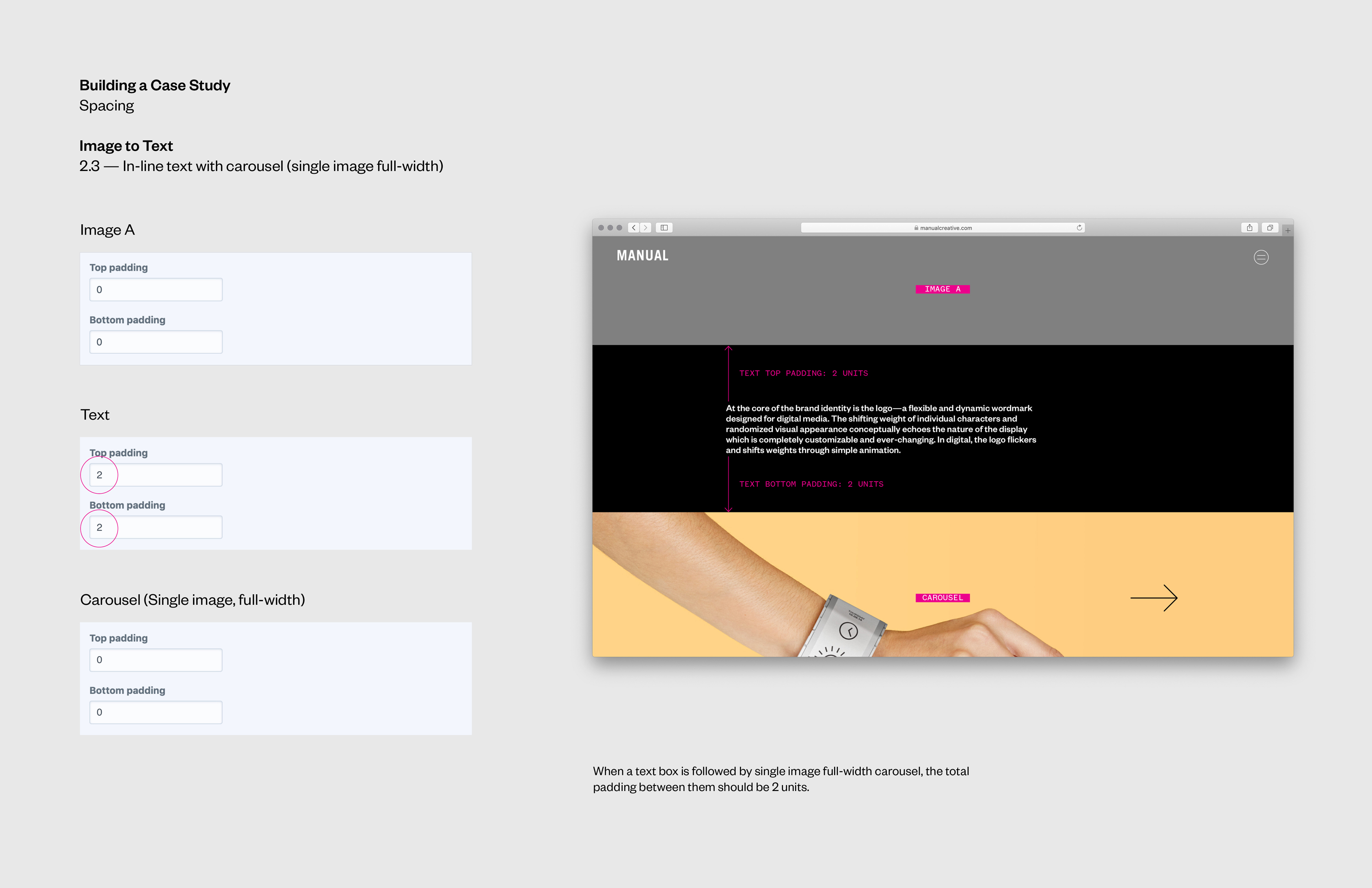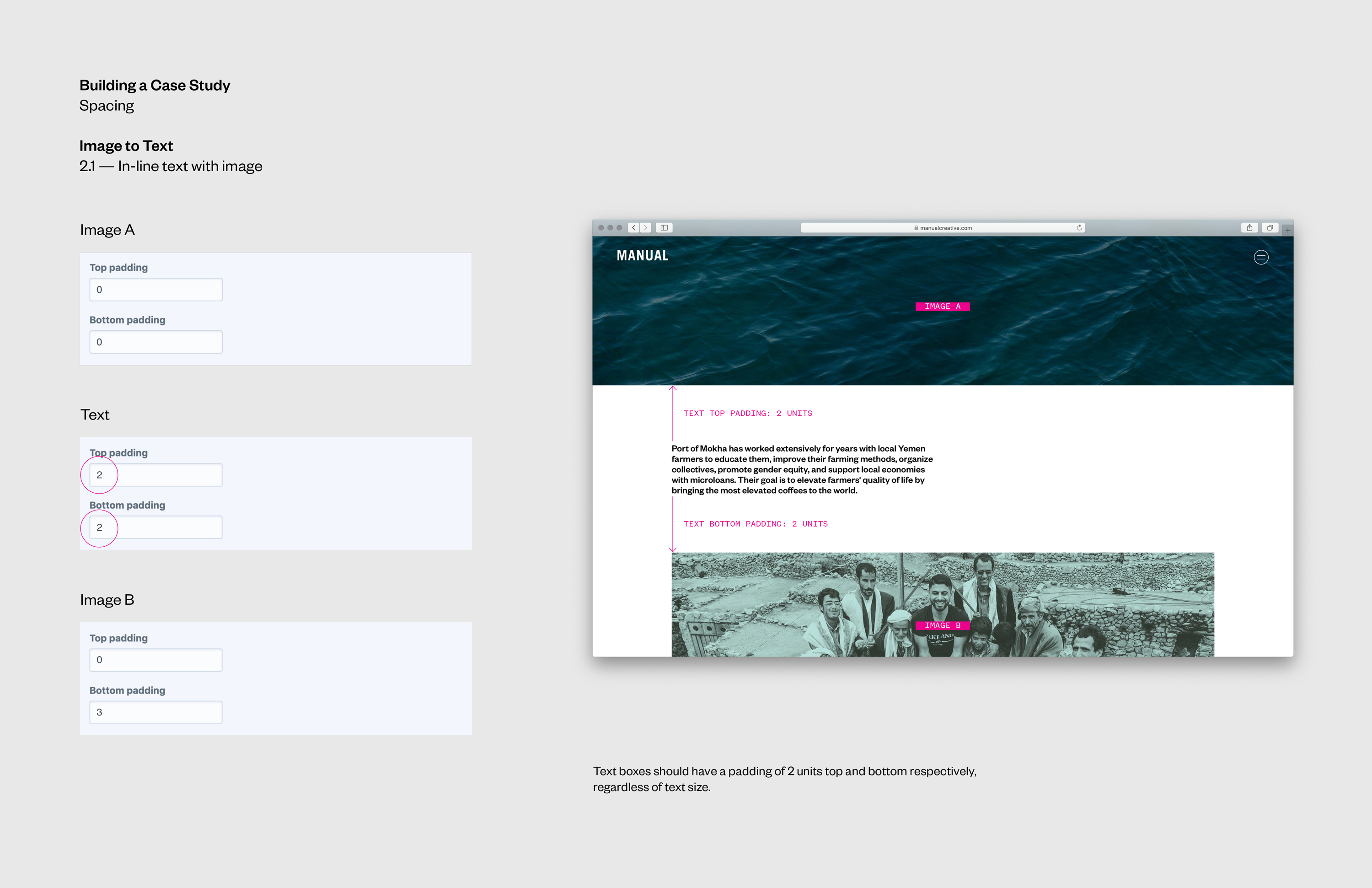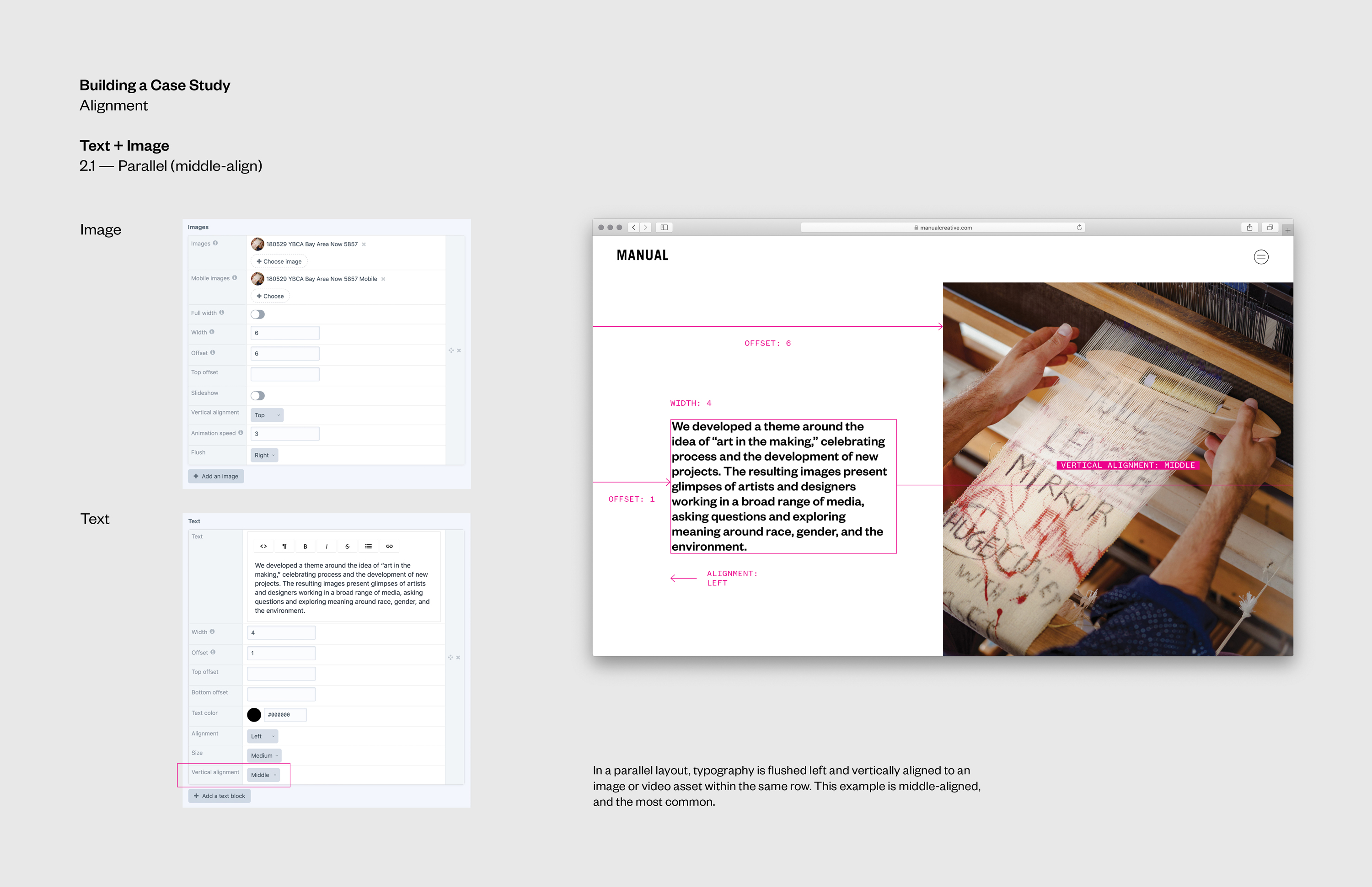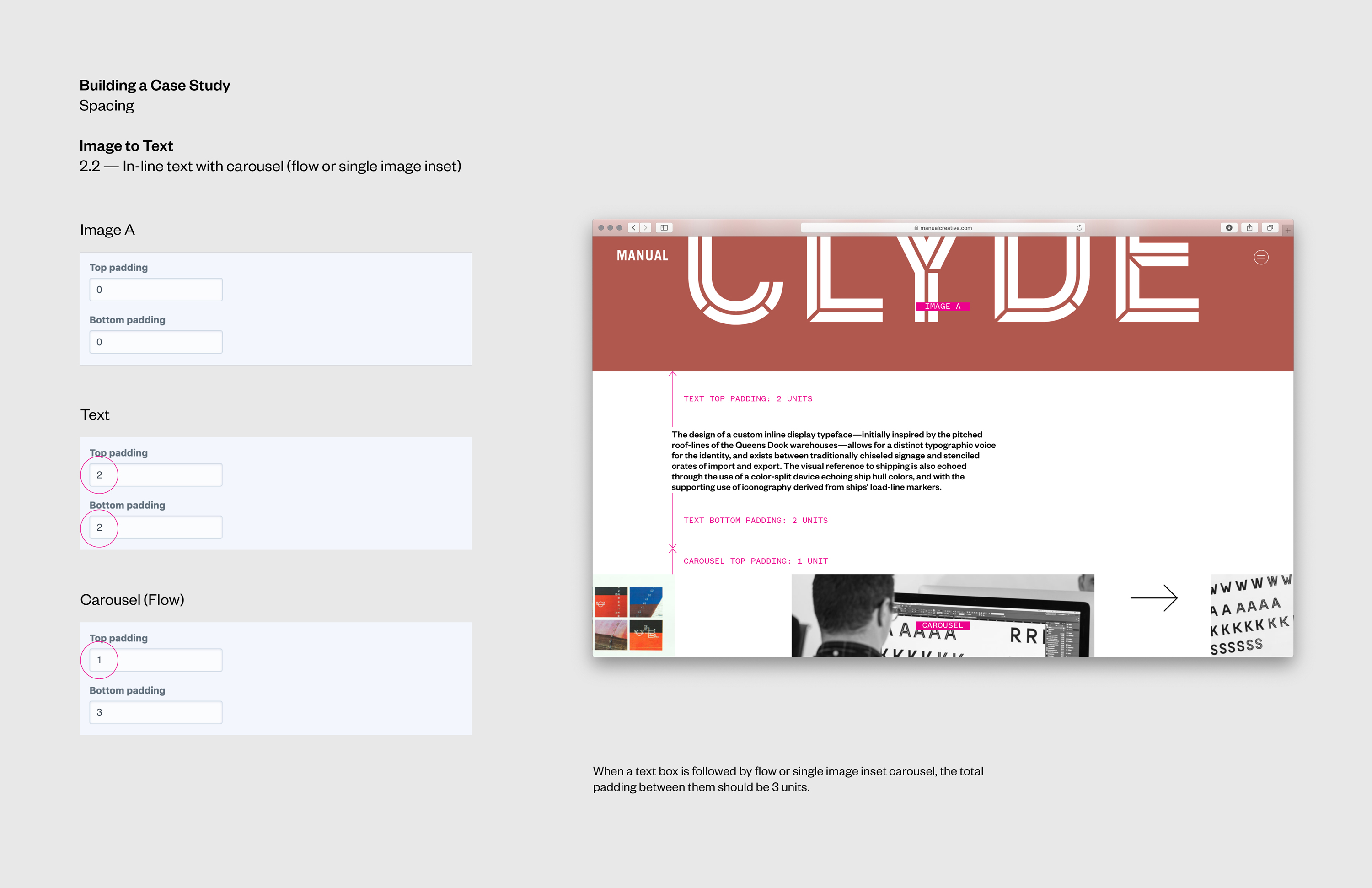 I created a 69-page usage guide to ensure the Manual team can continue building case studies and use the Craft system in my absence. This guide thoroughly documents fundamental aspects of the CMS, asset preparation guidelines, content functions, layout parameters, as well as page styling methods.