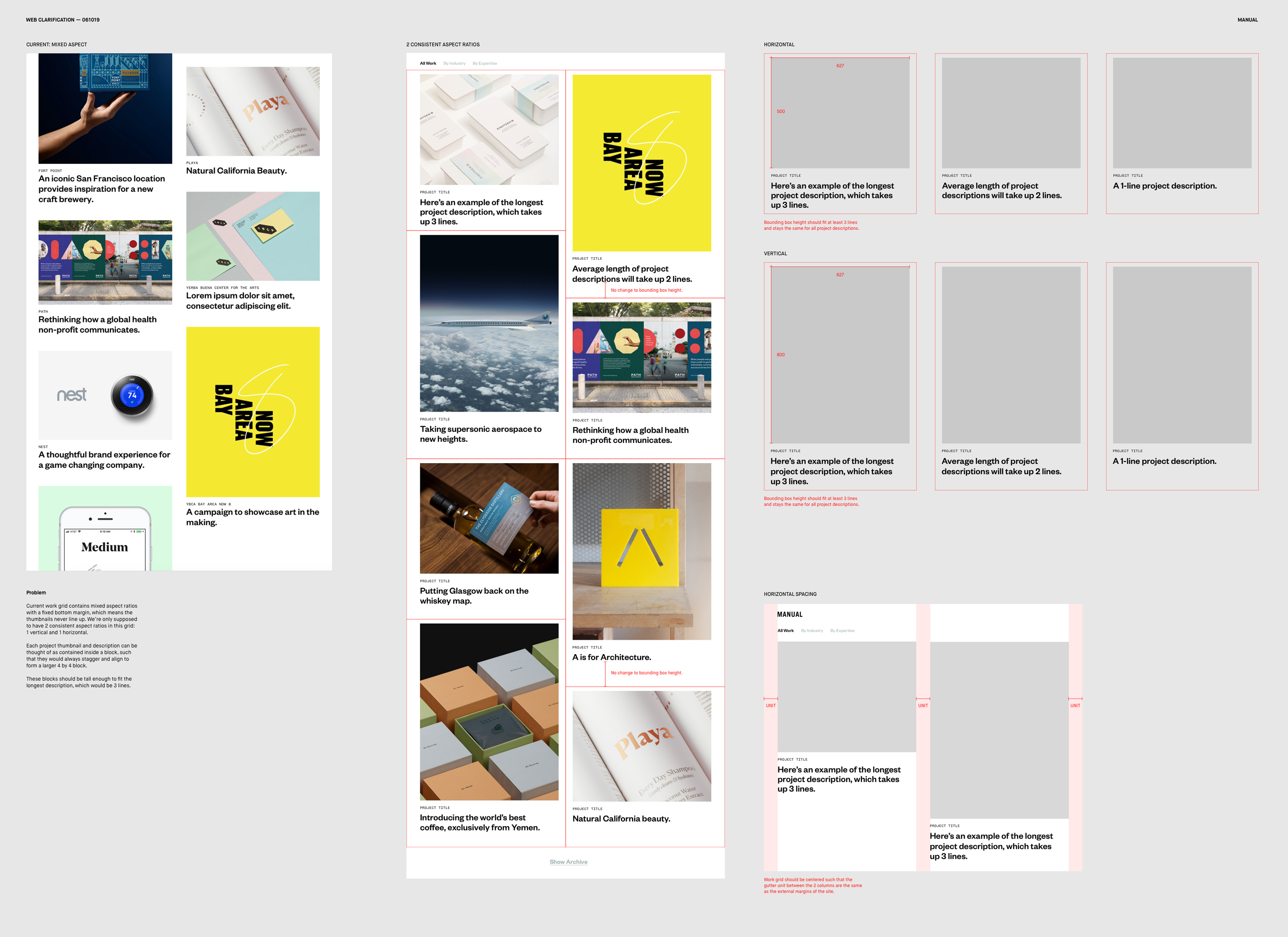 Web efforts included benchmarking, UX + visual design, QA testing and communications with Archive’s dev team in London. Working closely with Chris (founder & director at Archive), we customized Craft CMS with powerful layout tools such as carousel variations, complex alignment options, background fills, autoplaying video embeds, and even the ability to upload looping SVG animations.